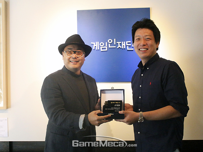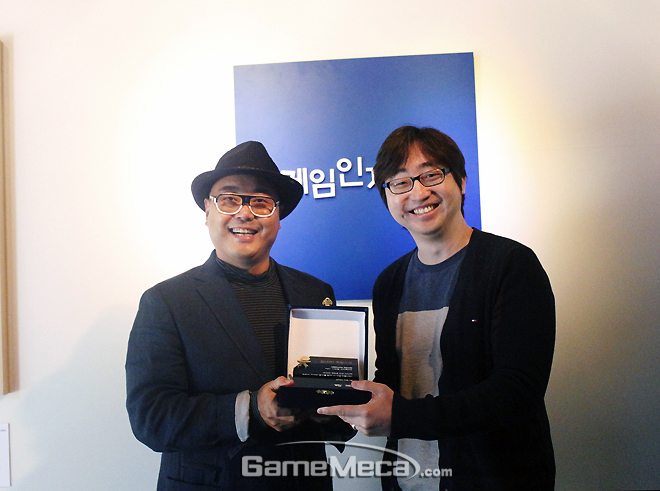 아크베어즈 정신철 대표(상)과 나인엠인터랙티브 김성훈 대표(하)가 수상 중이다