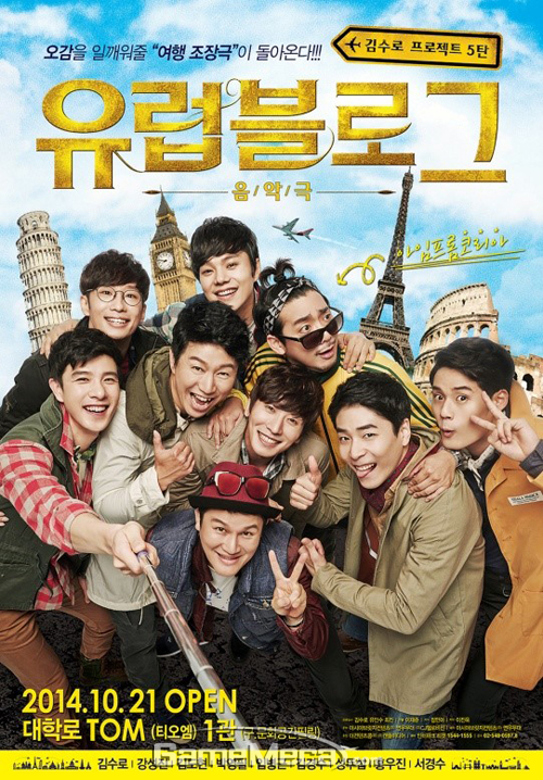 '유럽블로그'는 2013년에 초연된 창작 음악극으로, 게임인재단 김수로 문화자문위원이 직접 출연과 프로듀싱을 맡았다. 배우들이 연습 기간 내 실제로 유럽을 여행하며 겪은 에피소드를 중심으로 구성되어 스토리에 개연성을 더했으며, 무대 위 스크린을 통해 실제 촬영한 유럽 풍경이 노출된다. 더불어 3인조 어쿠스틱 밴드의 라이브 공연이 곁들여진다. 공연은 대학로 TOM 1관에서 10월 21일(화)부터 시작되며, 2015년 1월까지 계속된다.