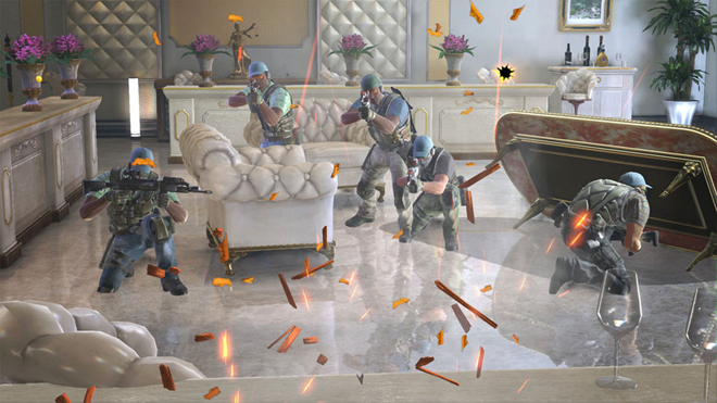 ‘타임 크라이시스 5’는 8년만에 출시되는 ‘타임 크라이시스’ 신작으로, 시리즈 특유의 발판 액션도 더욱 업그레이드 되어 돌아온 것이 특징이다. 이번 작품은 한 방향만을 바라보고 은/엄폐하던 전작과 달리, 두 개의 발판을 사용해 엄폐물에서 바라보는 방향을 전환을 할 수 있다. 이를 통해 방패로 총알을 막는 적을 측면에서 공략하는 등 전보다 더 역동적인 액션이 가능하다.