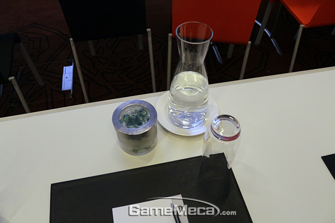 ▲ 강연장에 들어가면 친절하게도 물과 사탕, 필기구가