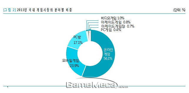 ▲ 2013년 국내 게임시장 분야 별 비중 (사진제공: 한국콘텐츠진흥원)
