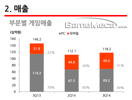 ▲ NHN엔터테인먼트 2014년 3분기 매출 그래프 (사진제공: NHN엔터테인먼트)