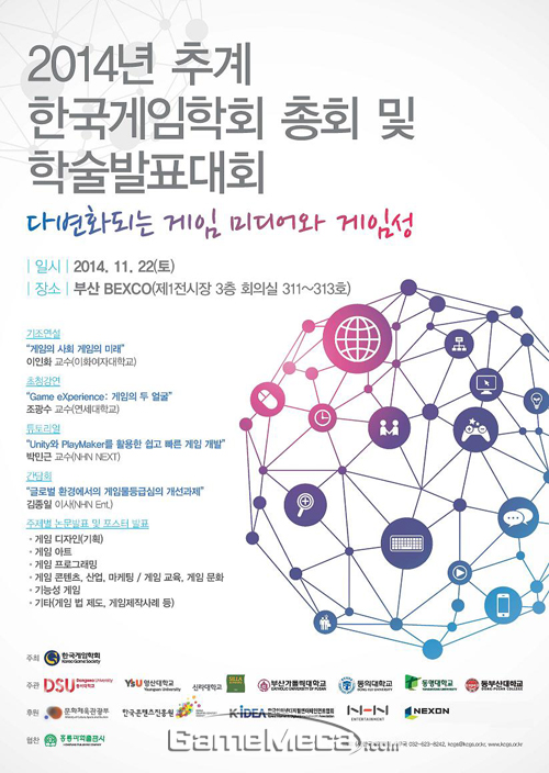 한국게임학회는 오는 11월 22일(토) 부산 벡스코에서 '다변화되는 게임 미디어와 게임성'이라는 주제로 2014년 추계 학술발표대회를 개최한다.