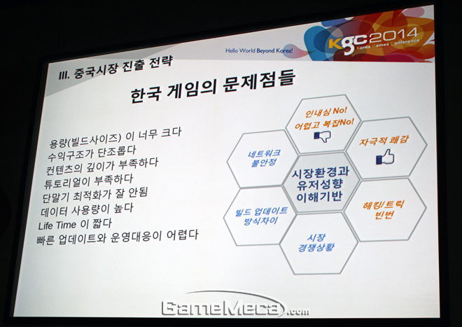 그러나 중국은 상황이 다르다. 최근 4G 데이터망을 구축하고 있지만, 아직 2.5G를 사용하는 지역이 많다. 거기다가 데이터 요금도 꽤 비싼 편이라 대부분의 유저들이 게임 용량에 민감하다. 특히 국내 게임은 설치 후 추가 다운로드가 발생하는 경우가 많아 중국 유저들은 게임에 진입하기도 전에 흥미를 잃을 확률이 높다.
