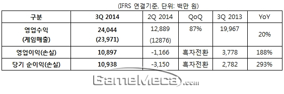 ▲ 웹젠의 2014년 3분기 실적 자료 (도표제공: 웹젠)