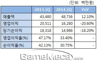 ▲ 넥슨지티 2014년 3분기 실적 (자료제공: 넥슨지티)