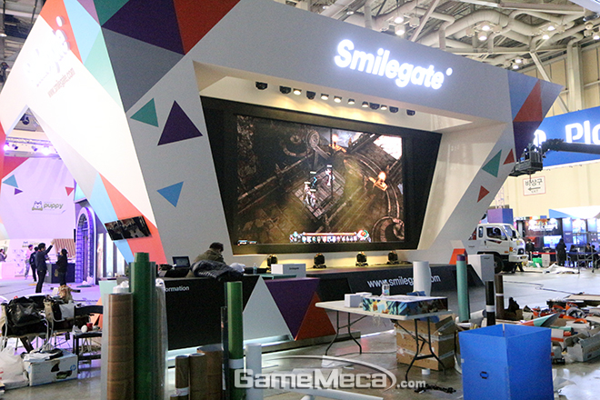 ▲ 스마일게이트 부스는 저녁이 되어도 동분서주