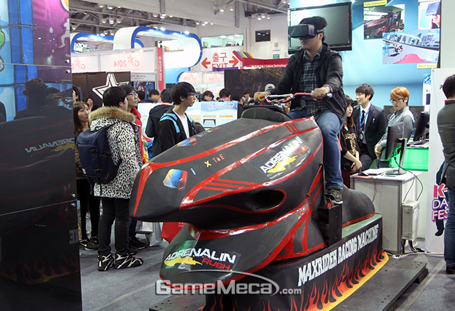 국제 게임 전시회 '지스타 2014'가 부산 벡스코에서 총 4일간의 여정을 시작했다. 올해 지스타 B2C 전시관에서는 가상현실 기기 '오큘러스 리프트'를 활용한 다양한 게임과, 실제로 게임 속에 들어간 느낌을 주는 체감형 기기들을 다수 확인할 수 있었다.