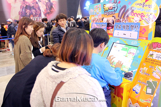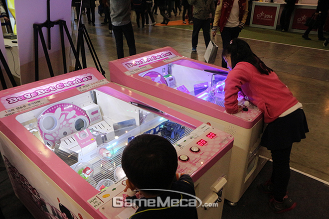 부산 벡스코에서 열린 국제 게임 전시회 '지스타 2014' 2일차 아침이 밝았다. 주말을 앞둔 만큼 다양한 연령대의 관객들이 전시장을 가득 메웠다. 대작 온라인 게임도 좋지만, 가족 또는 연인과 가볍게 즐길 수 있는 아케이드 부스도 나름 뜨거운 열기를 보여줬다.