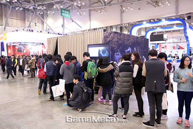 ▲ 대형 업체 부스 틈바구니에서, 꾸준히 많은 관람객을 자랑한 아케이드 부스