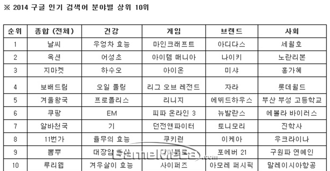 ▲ 2014 구글 인기 검색어 (자료제공: 아이엠아이)