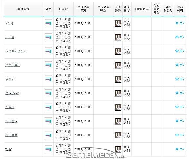▲ NHN엔터테인먼트가 서비스하는 웹보드게임 10종이 등급취소 예정 처분을 받았다