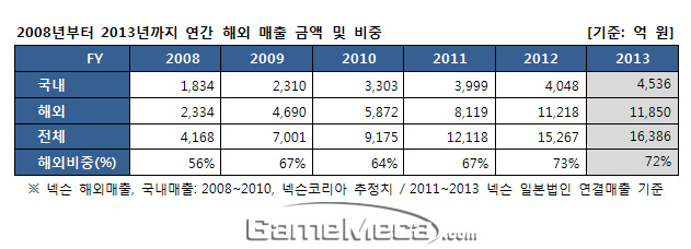 ▲ 넥슨 연간 해외 매출 금액 및 비중 (자료제공: 넥슨)