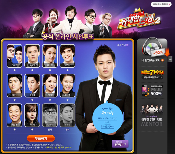 온라인 사전투표를 실시하는 `스타오디션 위대한 탄생2`
