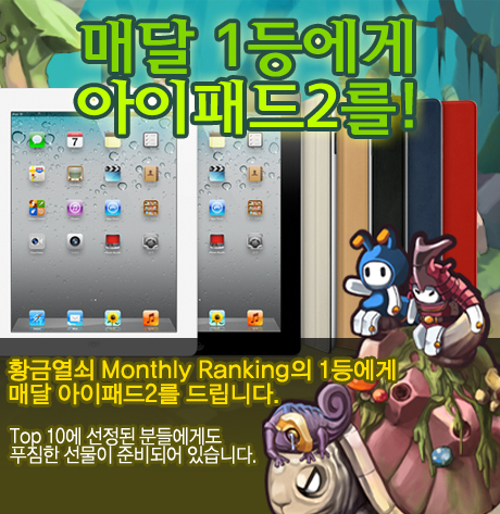 매달 탑랭킹 10명에게 아이패드 2를 비롯한 상품을 지급하는 황금열쇠 이벤트