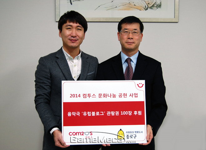 컴투스는 종로구청 희망복지지원팀을 방문해 문화나눔 사회공헌 활동 일환으로 음악극 ‘유럽블로그’ 공연티켓 100장을 전달했다고 26일 밝혔다.