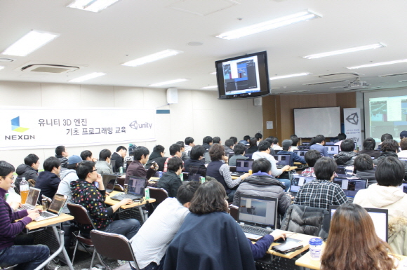 유니티 테크놀로지스는 글로벌 게임 퍼블리셔인 넥슨과 함께 보다 쉽게 콘텐츠 개발이 가능한 유니티 멀티플랫폼 엔진의 기초 내용을 교육하는 2차 ‘유니티 3D 엔진 기초 프로그래밍 교육’을 성황리에 진행했다고 밝혔다.