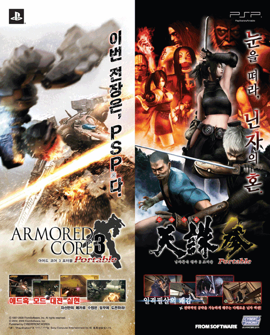 사이버프론트코리아(CFK)는 프롬소프트웨어의 PSP 용 액션 게임 `닌자활극 천주 3 포터블`을 2009년 9월 3일 출시한다.