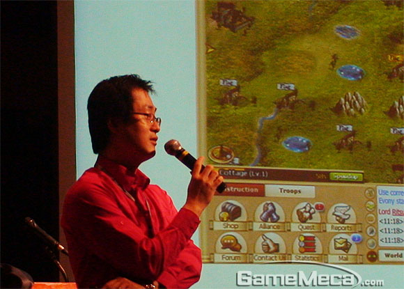 최근 웹게임 ‘웹 마법의 대륙’의 서비스를 시작한 이수희 대표는 웹게임의 역사와 자신이 생각하는 웹게임의 가치를 강연을 통해 말했다. 이수희 대표는 “웹게임은 게임포지 개발한 오게임과 인노게임즈의 부족전쟁을 시작으로 세계적으로 성장하기 시작했다. 최근 중국에서도 웹게임이 급속한 성장률을 보이며 1,000억원에 달하는 시장을 가지고 있다. 또한 페이스북에서 서비스하는 웹게임의 경우는 2억 명이라는 어마어마한 유저를 보유하고 있다.”고 현재 웹게임이 가진 세계적인 인지도와 시장성에 대하여 말하며 강연을 시작했다.