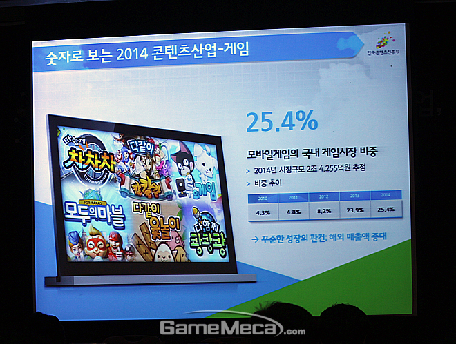 송 원장이 지적한 대로 한국 게임의 전망은 밝지 않다. 2013년에는 마이너스 성장을 기록했으며, 2014년에도 매출액 10조 4,000억 원, 수출액 30억 5,000만 달러로 전년 대비 각각 7.4%, 12.2% 성장할 것으로 전망됐다. 한국콘텐츠진흥원 윤호진 산업정보팀장은 "수치적인 부분은 증가하지만 5년 연평균 성장률에는 못 미치는 수준"이라고 강조했다.