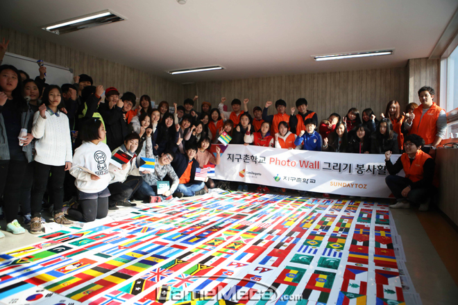지난 7일(토) 진행된 벽화 꾸미기 봉사활동은 지난해 5월 ‘스마일게이트, 선데이토즈 지구촌 학교 후원협약’의 연계 활동으로 지구촌 학교 환경 미화 및 학업환경 개선을 위해 마련됐다. 행사에 참여한 50명의 양사 임직원은 다문화가정 어린이들이 글로벌 리더가 되길 바라는 마음으로 300여 장의 타일에 전 세계 국기를 그렸다.