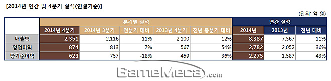 ▲ 엔씨소프트 2014년 실적표 (사진제공: 엔씨소프트)