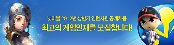 CJ E&M 넷마블과 CJ게임즈는 오는 19일부터 30일까지 2012년 상반기 인턴사원 공개채용 모집을 실시한다고 금일(18일) 밝혔다.