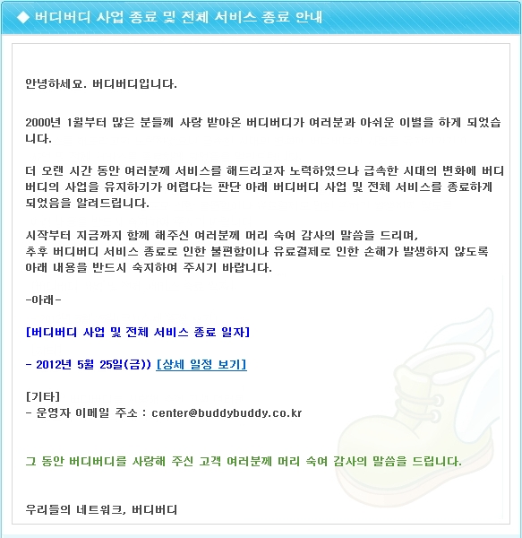 `버디버디` 의 서비스 종료 공지