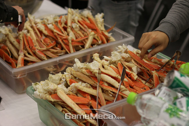 ▲ 엔씨소프트의 사내 특식 사진: 12일 점심에 열린 엔씨소프트 대게 파티, 수북이 쌓인 대게를 보면 업무 스트레스로 하락된 체력이 바로 회복될 것 같네요