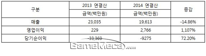 ▲ 드래곤플라이 2014년 연간 실적 (자료제공: 드래곤플라이)