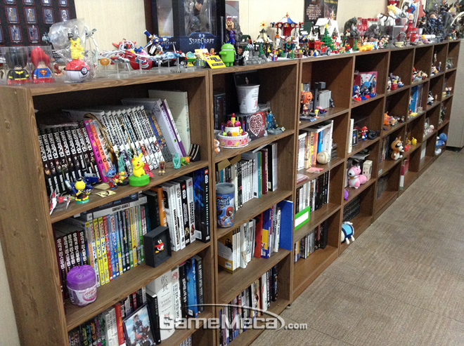 ▲ 세시소프트 사무실 사진: 게임사를 방문할 때 자주 보는 것 중 하나가 개발자들 책상에 놓여진 피규어나 프라모델입니다. 세시소프트를 방문해 사무실에 들어선 순간 입이 떡 벌어지게 놀랐습니다. 양 옆 진열대로 가득찬 이 아이템 때문이었는데요, 세시소프트 강성욱 대표가 취미로 모은 것 중 일부라고 하는데요, 역시 이 정도는 돼야 게임사 사장님이죠 ^^