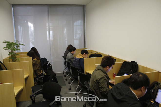 ▲ 엔씨소프트 기자실과 접견실 사진: 뜨거운 면학 분위기가 느껴지는 게 왠지 취업시즌 대학 도서관 같지 않나요? 주주총회가 있었던 27일 아침 엔씨소프트 기자실과 접견실 사진입니다. 평소에는 빈자리가 많은 곳입니다. 아무래도 넥슨과 엔씨소프트 경영권 분쟁의 분수령이 될 주주총회였기에... 그만큼의 '기자들 관심'을 보여주는 장면이 아닌가 합니다. "주주총회는 큰 갈등없이 진행됐습니다 ^^"