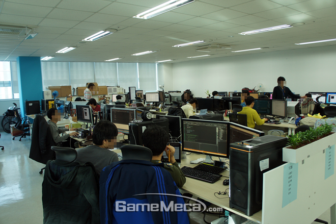 ▲ 블루홀스튜디오 신규 사무실 사진: 블루홀스튜디오가 지노게임즈를 인수하면서 길 건너편에 블루홀 2호 사무실을 새롭게 마련했습니다. 이곳에는 두 회사의 모바일 개발진이 모여 '테라'와 '데빌리언' 등 기존 IP를 활용해 모바일게임을 개발하게 됩니다. 한솥밥을 먹게된 것인데요, 3월부터 시작된 이사가 오늘(6일) 막 마무리가 되었습니다. 합방 첫날이라 어색해서 그럴까요? 아니면 새로운 도전에 대한 열의 때문일까요? 얼굴에 다들 홍조가 만연합니다. ^^
