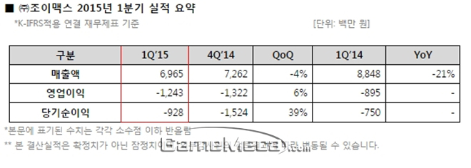 ▲ 조이맥스 1분기 실적 (자료제공: 조이맥스)
