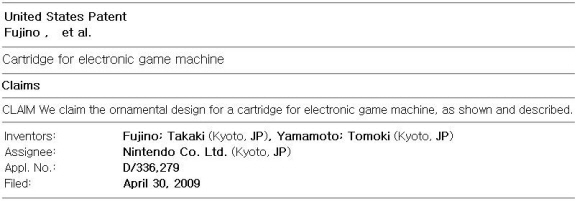 미국 특허청 USPTO는 3월 2일, 2009년 4월 30일에 접수된 닌텐도의 새로운 카트리지 관련 특허를 승인하였다고 공식 발표했다. 특허 내용에는 ‘전자 게임기 카트리지 디자인’이라고만 명시되어 있고, 구체적인 내용은 설명되지 않았다. 닌텐도가 UPSTO에 제출한 이미지를 보면 이 카트리지는 게임기 바깥으로 나와 있는 형태로 되어 있으며, 닌텐도DS 게임기에 연결되기도 한다.