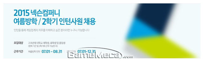 넥슨과 넥슨지티는 5월 22일부터 6월 8일까지 2015년도 여름방학(단기) 및 2학기(장기) 인턴사원을 공개 채용한다.