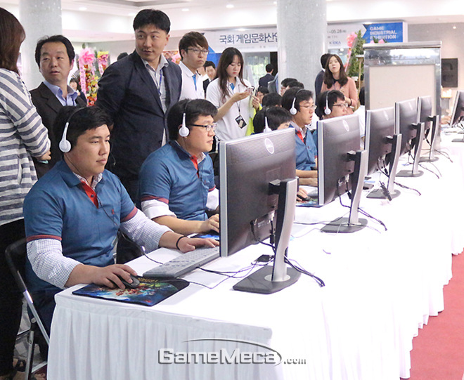 새정치민주연합 김광진 의원, 새누리당 김상민 의원, 두 젊은 의원이 주최한 이번 전시회는 주요 온라인 및 모바일게임을 즐길 수 있는 체험부스와 게임 상품 전시 코너가 마련됐다. 무거운 ‘토론회’만 열리던 국회에서 열린 가벼운 ‘전시회’는 보는 사람으로 하여금 신선함을 줬다. 여기에 국회 직원들이 출전한 ‘리그 오브 레전드’ 대회까지 열렸다. 출전 팀원들이 서로 옷도 맞춰 입고, 강민 해설을 초청해 중계를 진행하는 등 제법 ‘대회’다운 현장감을 살렸다.