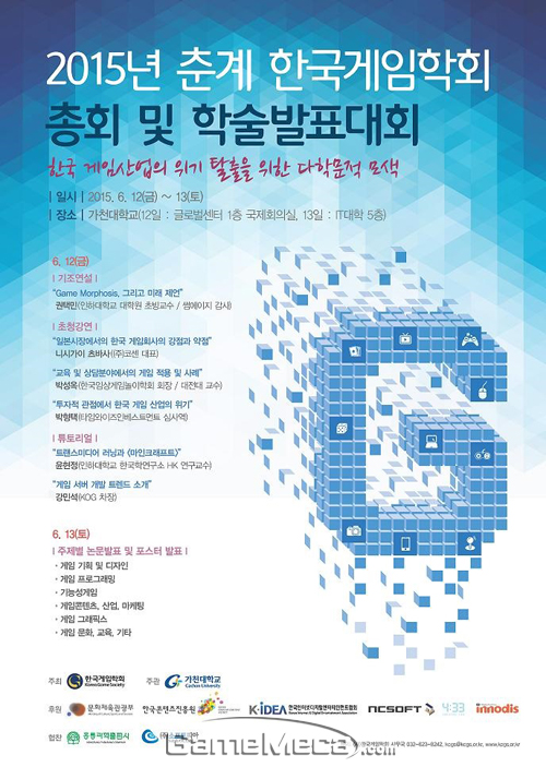 한국게임학회는 오는 6월 12일(금)부터 13일(토), 가천대학교에서 2015년 춘계 학술발표대회를 개최한다.