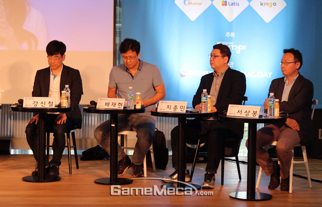 ▲ 좌측부터 NHN엔터테인먼트 조현식 이사, 넥슨 이상만 본부장, 다음카카오 이석우 대표, 남경필 경기도지사장