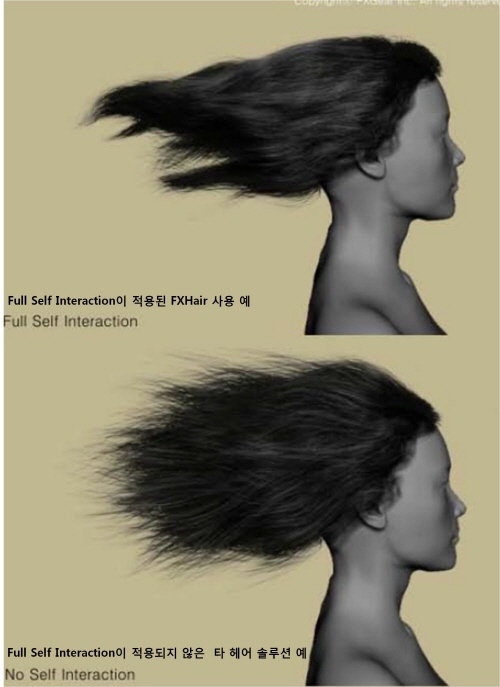 `에프엑스헤어 V4` 는 이런 디테일한 움직임을 기술적으로 구현할 수 있다는 강점을 가지고 있다. 각 캐릭터의 본래 머리결을 유지하면서 외부 힘과의 상호작용까지 고려하여 실제 인간의 머리카락 움직임 같은 매우 사실적인 표현이 가능하다.