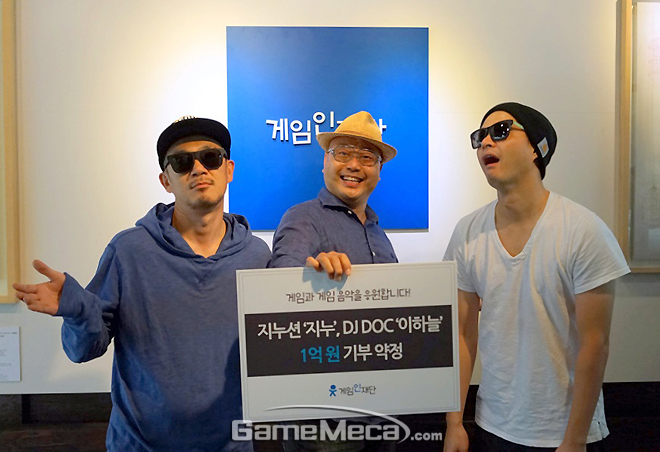 게임인재단은 30일, ‘지누션’의 멤버 지누, DJ DOC의 이하늘과 총 1억원의 기부금 약정식을 가졌다. 이들은 게임산업과 음악산업의 교류 및 게임음악 발전을 위해 총 1억원을 기부하기로 했다.