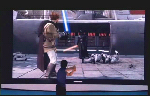 ▲ `키넥트` 시연 행사에서의 플레이 모습, 위쪽부터 `키넥트 어드벤처`, `키넥트 스타워즈`