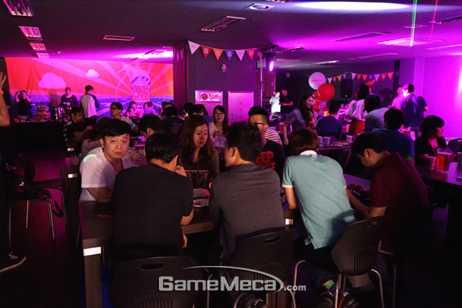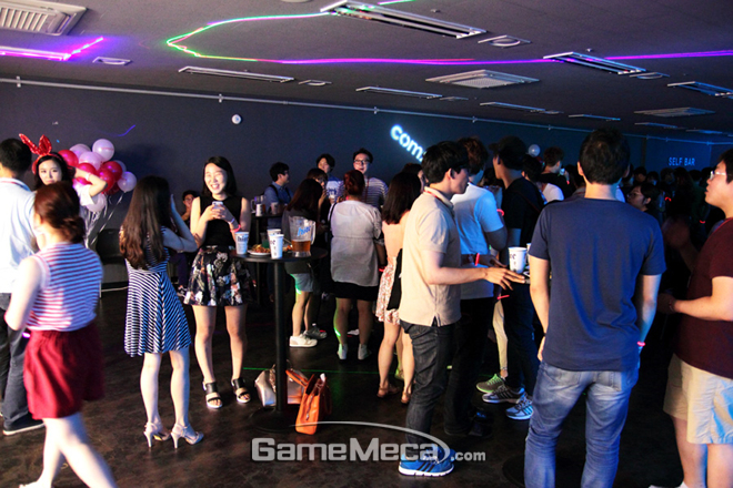 ▲ '불금'에 열린 게임사 맥주파티: 30도를 웃도는 찜통 더위가 이어지고 있네요. 무더운 여름, 한 게임사가 직원들의 더위를 날려버리기 위해 클럽으로 변신했습니다. 금요일 저녁 시간에 맞춰 지하 1층 식당을 클럽처럼 꾸민 것인데요. 그 회사가 어디냐고요? 바로 모바일게임사 컴투스입니다. 뿐만 아니라 직원들에게 시원한 맥주까지 무제한으로 제공했는데요. 이런 이유 때문이라면 ‘불금’을 회사에서 보내도 나쁘지만은 않겠네요.ㅎㅎ