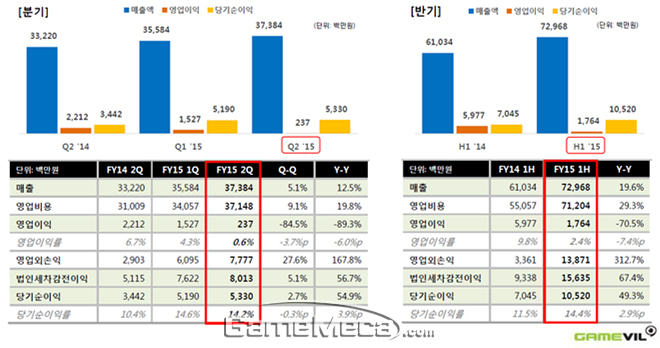 ▲ 게임빌 2015년 2분기 실적발표 자료 (자료출처: 게임빌)