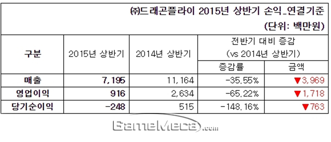 ▲ 드래곤플라이 2015년 상반기 실적 (자료제공: 드래곤플라이)
