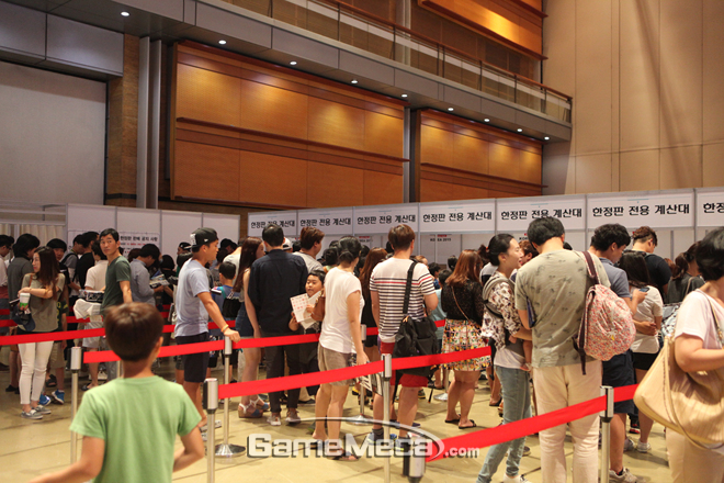 ▲ 건프라 엑스포 2015: 엄청난 인파가 보이시나요? 코엑스 D홀 입구부터 전시장을 가로질러 반대쪽 벽으로 이어질 정도로 긴 줄이 형성됐는데요. 이 많은 사람들이 오전 10시 이전부터 코엑스를 찾았습니다. 뭘 사려는 걸까요? 그 이유는 바로 건프라 엑스포 한정판 때문입니다. 반다이남코코리아는 건프라 엑스포 기간 동안 한정 수량으로 특별 제작된 프라모델을 판매했는데요. 이 제품을 사기 위해 많은 사람들이 모인 것이죠. 연령대도 어린 아이부터 학생, 성인까지 다양하네요. 그만큼 건담 프라모델이 많은 이들에게 관심받고 있다는 반증이겠죠? ㅎㅎ