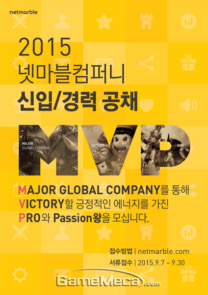 넷마블게임즈(이하 넷마블)는 2015년 하반기 신입, 경력 공개채용을 7일(월)부터 30일까지 진행한다고 전했다.