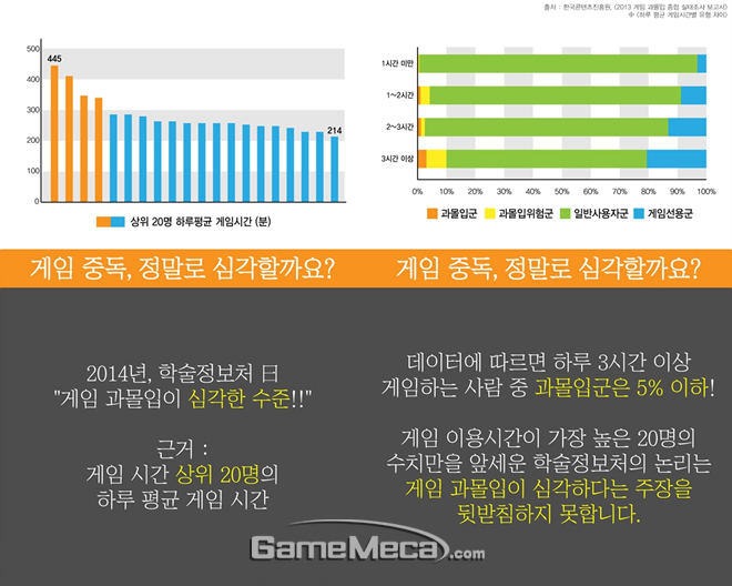 또한, 총학생회는 학교측이 게임 과몰입 근거로 제시한 자료가 상위 30명을 대상으로 조사한 것이고, 게임 플레이 시간이 많다고 무조건 과물입인 것은 아니라고 반박했다. 한 학생은 “하루 3시간 이상인 게이머 중 과몰입자는 5% 정도”라며 “3시간 이상 플레이하는 포항공대 학생은 20명이 조금 넘는다. 따라서 실제 과몰입자는 많이 잡아도 3~4명에 불과한데, 이를 가지고 상황이 심각하니 셧다운을 해야 된다는 것은 말이 안된다”고 비판했다.
