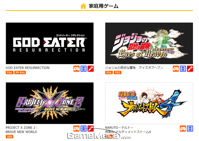 ▲ 반다이남코게임즈 TGS 2015 출전작 목록 (사진출처: 반다이남코게임즈 TGS 공식 페이지)