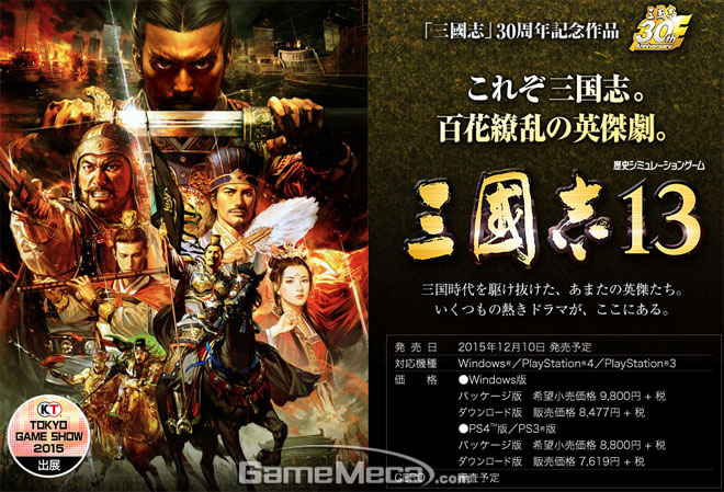 ▲ '삼국지 13'을 TGS에서 즐길 수 있다 (사진출처: 코에이테크모 TGS 2015 공식 페이지)